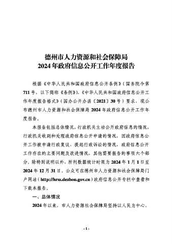 Page 2 - 德州市人力资源和社会保障局2024年政府信息公开工作年度报告