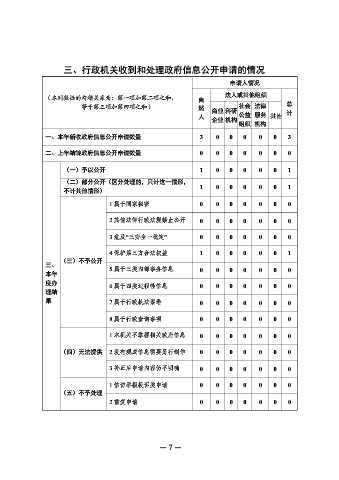 三、行政机关收到和处理政府信息公开申请的情况