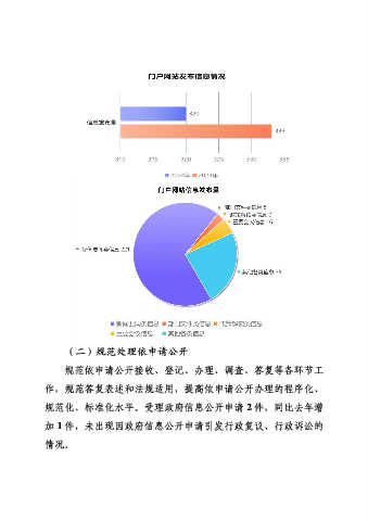 (二)规范处理依申请公开 规范依申请公开接收、登记、办理、调查、答复等各环节工 作,规范答复表述和法规适用,提高依申请公开办理的程序化、 规范化、标准化水平。受理政府信息公开申请 2 件,同比去年增 加 1 件,未出现因政府信息公开申请引发行政复议、行政诉讼的 情况。
