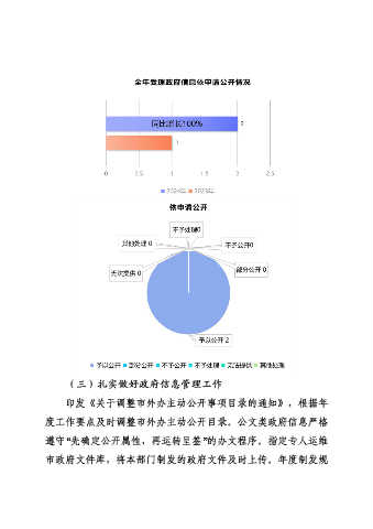 (三)扎实做好政府信息管理工作 印发《关于调整市外办主动公开事项目录的通知》,根据年 度工作要点及时调整市外办主动公开目录。公文类政府信息严格 遵守“先确定公开属性,再运转呈签”的办文程序。指定专人运维 市政府文件库,将本部门制发的政府文件及时上传。年度制发规