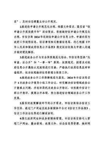 4.推进政务公开工作保障规范化落实。2024 年市信访局召
