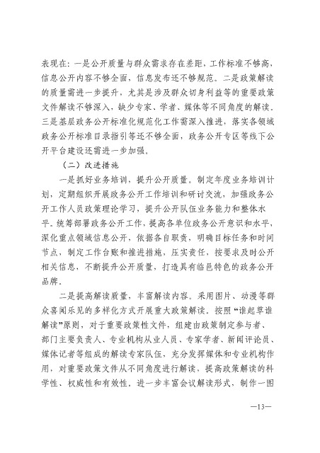 信息公开内容不够全面,信息发布还不够规范。二是政策解读