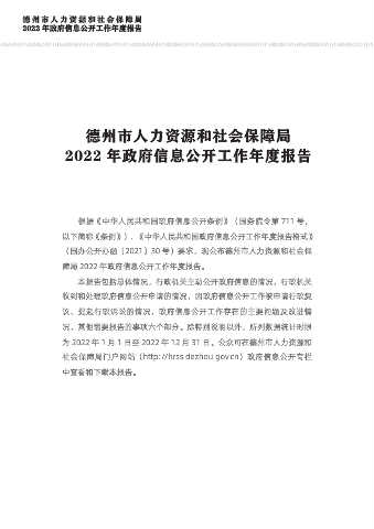 Page 2 - 德州市德州市人力资源和社会保障局2022年政府信息公开工作年度报告