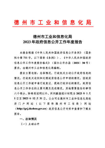 Page 2 - 德州市工业和信息化局2023年政府信息公开工作年度报告