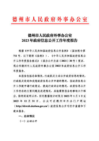 Page 2 - 德州市人民政府外事办公室2023年政府信息公开工作年度报告