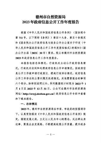 Page 2 - 德州市自然资源局局2023年政府信息公开工作年度报告